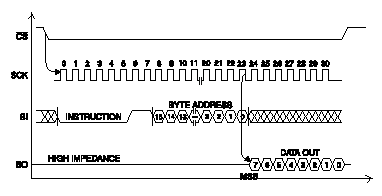 Рис.6. Чтение из памяти. Микропроцессор MС выдает через встроенный ЦАП сигналы на усилитель-фильтр U2, где они усиливаются и ограничиваются по верхней частоте до 4 кГц. В качестве ЦАП в микроконтроллере работает встроенный широтно-импульсный модулятор, который с помощью дифференцирующих сигналов и интегрирующей цепи может восстановить форму исходного сигнала.