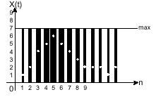 Рис.3. Квантированный сигнал. Наконец мы можем получить кодовые отсчеты сигнала (рис.4).