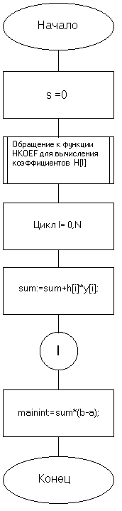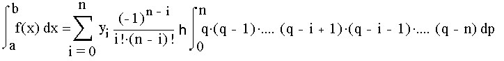 Для вычисления интеграла сначала находятся коэффициенты Ньютона-Котеса. Их нахождение осуществляется в процедуре hkoef.