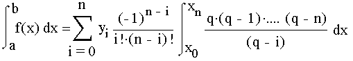 где q=(x-x0)/h – шаг интерполяции, заменим подынтегральную функцию f(x) интерполяционным многочленом Лагранжа: