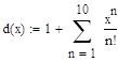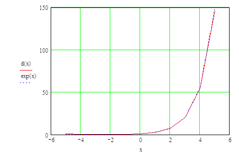- на интервале от -10 до 10 Разложение функции d(x)=exp(x) в степенной ряд