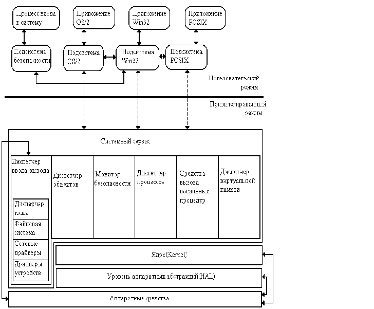 рукций привилегированного режима ( kernel - mode ) , представляющих ба- зовый сервис операционной системы подсистемам среды . Исполняющая система состоит из нескольких компонентов ; каждая из них предназначена для поддержки определённого системного сервиса . Так , один из компо- нентов - монитор безопасности (Security Reference Monitor) - функциониру- ет совместно с защищёнными подсистемами и обеспечивает реализацию модели безопасности системы .