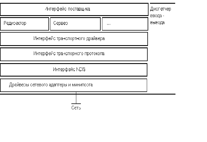 NT имеет встроенные в систему сетевые возможности . Windows NT также позволяет обеспечить связь с различными типами хост - компьютеров бла- годаря поддержке разнообразных транспортных протоколов и использова- нию средств “клиент-сервер” высокого уровня ,включая именованные кана- лы ,вызовы удалённых процедур (RPC - remote procedure call ) и Windows - сокеты .