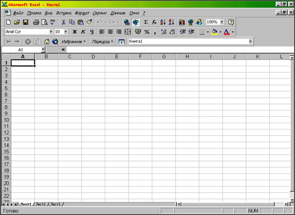 Интерфейс Microsoft Excel Окно Excel содержит множество различных элементов (см рис.1). Некоторые из них присущи всем программам в среде Windows, остальные имеются только в этом табличном редакторе. Вся рабочая область окна Excel занята чистым рабочим листом (или таблицей), разделённым на отдельные ячейки. Столбцы озаглавлены буквами, строки - цифрами. Как и во многих других программах в среде Windows, вы можете представить рабочий лист в виде отдельного окна со своим собственным заголовком - это окно называется окном рабочей книги, так как в таком окне можно обрабатывать несколько рабочих листов. На одной рабочей странице в распоряжении будет 256 столбцов и 16384 строки. Строки пронумерованы от 1 до 16384, столбцы названы буквами и комбинациями букв. После 26 букв алфавита колонки следуют комбинации букв от АА, АВ и т.д. В окне Excel, как и в других программах семейства Microsoft Office, под заголовком окна находится строка меню. Чуть ниже находятся панели инструментов: «Стандартная» и «Форматирование». Кнопки на панели инструментов позволяют быстро и легко вызывать многие функции Excel.