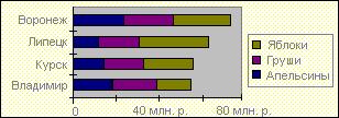 Линейчатая диаграмма с накоплением показывает вклад отдельных элементов в общую сумму. Рис 5: Линейчатая диаграмма (одна из разновидностей) ·