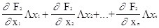 ................ (1) Fn(x1,x2,...xn)=0, (например, полученные на предыдущей итерации) равны соответственно a1,a2,...an. Задача состоит в нахождении приращений (поправок) к этим значениям Dx1, Dx2,...., Dxn, благодаря которым решение системы (1) запишется в виде: xi=ai+ Dx1, x2=a2+ Dx2,...,xn,=an+ Dxn. (2) Проведем разложение левых частей уравнений (1) в ряд Тейлора, ограничиваясь лишь линейными членами относительно приращений: F1(x1,x2,...xn) »F1(a1,...an)+ F2(x1,x2,...xn) »F2(a1,...an)+ .............................................. Fn(x1,x2,...xn) »Fn(a1,...an)+ Поскольку в соответствии с (1) левые части этих выражений должны обращаться в нуль, то приравняем нулю и правые части. Получим следующую систему линейных алгебраических уравнений относительно приращений: