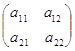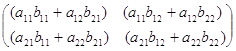Для обозначения произведения матрицыі А на матрицу В используют запись С = А × В. Операция составления произведения матрицы А на матрицу В называется перемножением этих матриц. Из сформулированного выше определения вытекает, что матрицу А можно умножить не на всякую матрицу В, необходимо, чтобы число столбцов матрицы А было равно числу строк матрицы В. Формула (1.4) представляет собой правило составления элементов матрицы С, являющейся произведением матрицы А на матрицу В. Это правило можно сформулировать и словесно: элемент ci j стоящий на пвресечении і-й строки и j-го столбца матрицьі С = А В, равен сумме попарных произведений соответствующих элементов і-й строки матрицы А и j-го столбца матрицы В. В качестве примера применения указанного правила приведем формулу перемножения квадратных матриц второго порядка.