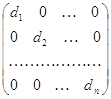 Из формулы (1.4) вытекают следующие свойства произведения матрицы А на матри-цу В: 1) сочетательное свойство: ( А В ) С = А ( В С ); 2) распределительное относительно суммы матриц свойство: ( A + B ) С = А С + В С или A ( В + С ) = A В + А С. Вопрос о перестановочном (переместительном) свойстве произведения матрицы A на матрицу В имеет смысл ставить лишь для квадратных матриц A и В одинакового порядка. Приведем важные частные случаи матриц, для которых справедливо и переста-новочное свойство. Две матрицы для произведения которых справедливо перестановочное свойство, принято називать коммутирующими. Среди квадратных матриц выделим класс так называемых диагональных матриц, у каждой из которых элементы, расположенные вне главной диагонали, равны нулю. Каждая диа-гональная матрица порядка п имеет вид D = где d1 , d2 , …, dn—какие угодно числа. Легко видеть, что если все эти числа равны между собой, т. е. d1 = d2 = … = dn то для любой квадратной матрицы А порядка п справедливо равенство А D = D А. Среди всех диагональных матриц (1.5) с совпадающими элементами d1 = d2 = … = dn = = d особо важную роль играют две матрицы. Первая из этих матриц получается при d = 1, называется единичной матрицей n-го порядка и обозначается символом Е. Вторая матрица получается при d = 0, называется нулевой матрицей n-го порядка и обозначается символом O. Таким образом, E = В силу доказанного выше А Е = Е А и А О = О А. Более того, легко показать, что А Е = Е А = А, А О = О А = 0. (1.6) Первая из формул (1.6) характеризует особую роль единичной матрицы Е, аналогичную той роли, которую играет число 1 при перемножений вещественных чисел. Что же касается особой роли нулевой матрицы О, то ее выявляет не только вторая из формул (1.7), но и элементарно проверяемое равенство А + 0 = 0 + А = А. В заключение заметим, что понятие нулевой матрицы можно вводить и для неквадрат-ных матриц (нулевой называют любую матрицу, все элементы которой равныї нулю). Блочные матрицы Предположим, что некоторая матрица A = || a ij || при помощи горизонтальных и вертикальных прямых разбита на отдельные прямоугольные клетки, каждая из которых представляет собой матрицу меньших размеров и называется блоком исходной матрицы. В таком случае возникает возможность рассмотрения исходной матрицы А как некоторой новой (так называемой б л о ч н о й) матрицыі А = || A ab ||, элементами которой служат указанные блоки. Указанные элементы мы обозначаем большой латинской буквой, чтобы подчеркнуть, что они являются, вообще говоря, матрицами, а не числами и (как обычные числовые элементы) снабжаем двумя индексами, первый из которых указывает номер «блочной» строки, а второй — номер «блочного» столбца. Например, матрицу