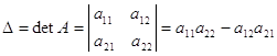 Замечательным является тот факт, что основные операции с блочными матрицами совершаются по тем же правилам, по которым они совершаются с обычными числовыми матрицами, только в роли элементов выступают блоки. Понятие определителя. Рассмотрим произвольную квадратную матрицу любого порядка п: A = С каждой такой матрицей свяжем вполне определенную численную характеристику, называемую определителем, соответствующим этой матрице. Если порядок n матрицы (1.7) равен единице, то эта матрица состоит из одного элемен-та аi j определителем первого порядка соответствующим такой матрице, мы назовем величину этого элемента. Если далее порядок п матрицы (1.7) равен двум, т. е. если эта матрица имеет вид A = то определителем второго порядка, соответствующим такой матрице, назовем число, равное а11 а22 — а12 а21 и обозначаемое одним из символов: