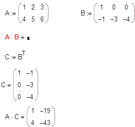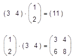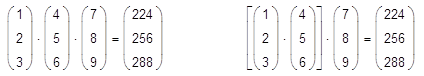 Еще один пример, относящийся к умножению вектора на матрицу-строку и, наоборот, строки на вектор, приведен на рис. 7. Во второй строке этого примера показано, как выглядит формула при выборе отображения оператора умножения No Space (Вместе). Однако тот же самый оператор умножения действует на два вектора по-другому.