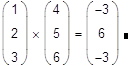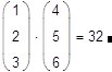 Скалярное произведение векторов (vector inner product) определяется как скаляр, равный сумме попарных произведений соответствующих элементов. Векторы должны иметь одинаковую размерность, скалярное произведение имеет ту же размерность. Скалярное произведение двух векторов u и v равно u · v = | u | · | v | · cos j, где j — угол между векторами. Если векторы ортогональны, их скалярное произведение равно нулю. Обозначается скалярное произведение тем же символом умножения (пример на рис.11). Для обозначения скалярного произведения пользователь также может выбирать представление оператора умножения. Никогда не применяйте для обозначения скалярного произведения символ который является общеупотребительным символом векторного произведения.