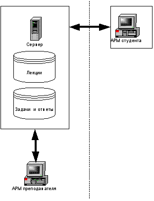 Рисунок 2. Но разрабатываемая система защиты, как упоминалось ранее, ориентирована на локальный пакет дистанционного обучения. Отсюда следует, что базы с задачами, лекциями и так далее, хранятся непосредственно на компьютере студента (см. рисунок 3).