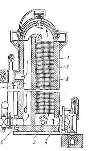 легирующие элементы: хром, никель, ванадий, титан и др. В настоящее время сталь производят преимущественно путем передела чугуна, при котором из чугуна удаляется избыток углерода, кремния, марганца, а также вредных примесей для придания ей необходимых свойств. Углерод и другие примеси при высокой температуре соединяются с кислородом гораздо энергичнее, чем железо, и их можно удалить при незначительных потерях железа. Углерод чугуна, соединяясь с кислородом, превращается в газ (окись углерода СО) и улетучивается. Другие примеси превращаются в окислы SiO2, MnO и Р2О5, которые вследствие меньшего по сравнению с металлом удельного веса всплывают и образуют шлак. В настоящее время в промышленности в основном применяют конверторный и мартеновский методы получения стали; кроме того, сталь получают в электрических дуговых и индукционных печах.. 7. Устройство и работа двухванных сталеплавильных аппаратов. Мартеновская печь имеет следующие основные части: рабочее или плавильное пространство, головки с вертикальными каналами, шлаковики, регенеративные камеры с насадками, газодымовые боровы, воздушнодымовые боровы, переводные устройства, общий дымоходовой боров, фундамент и железобетонные устои под рабочее пространство. Каждая печь имеет дымовую трубу. Нижнюю часть рабочего пространства называют подом. Печь имеет переднюю стену, в которой расположены завалочные окна, и заднюю стену, в которой находятся выпускные отверстия для стали. К торцевым стенам печи примыкают головки, служащие для ввода в рабочее пространство топлива и воздуха и для отвода продуктов горения. Готовки посредством вертикальных каналов соединяются соответственно с газовыми и воздушными шлаковиками, которые соединяются с регенераторными камерами, имеющими кирпичную кладку. Внизу регенераторных камер находятся поднасадочные каналы, соединенные газодымовыми и воздуходымовыми боровами, по которым отводятся продукты горения, а газ и воздух поступают в поднасадочные каналы регенераторов. На газодымовых и воздуходымовых боровах установлены переводные устройства (клапаны), служащие для изменения направления газа, воздуха и продуктов горения. Над рабочим пространством печи имеется свод. В современных мартеновских печах своды делают подвесного типа. Мартеновская шихта через садочные окна загружается в рабочее пространство печи, а жидкий чугун заливается из ковшей. Необходимое для процесса тепло поступает от факела, образующегося от сжигаемого в рабочем пространстве печи жидкого или газообразного топлива. В печах, работающих на газовом топливе, газы движутся следующим образом. Газ и воздух поступают с правой стороны, а продукты горения из рабочего пространства уходят с левой стороны. Тогда через правый газовый клапан поступает газ, который проходит в под насадочное пространство газового регенератора, а через правый воздушный клапан в под насадочное пространство правого регенератора поступает воздух. Газ и воздух, поднимаясь вверх, обмывают насадку, нагреваются до температуры 1000—1200° С, а затем попадают в под насадочную часть регенератора. Отсюда они проходят через шлаковики поднимаются по вертикальным каналам к пролетам головок, через которые затем поступают в рабочее пространство печи. При выходе из головок нагретые до высокой температуры газ и возду