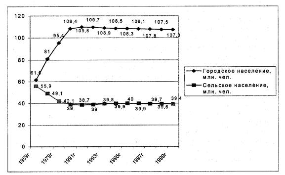 Всего за 60 лет Советской власти - с 1927 по 1988 г. население сельских регионов сократилось с 76 до 39 млн. человек. Альтернативы этому процессу не было: вплоть до начала 90-х годов остаться в деревне и вести хозяйство отдельно от колхоза было просто невозможно, так как крестьянин не мог распорядиться урожаем (отсутствовал рынок), а земля принадлежала коллективным хозяйствам. Исключение составляли личные подсобные хозяйства (приусадебное землепользование), на которых выращивалась продукция для личного потребления. Эти хозяйства получили распространение только в 70-х годах. Отток населения из сельских регионов усиливала пропаганда «великих строек». Миграция, характерная для всякой страны, переходящей от традиционно-аграрного к урбанистическому, индустриальному обществу, стала приобретать патологический характер, нарушая нормальный половозрастной состав как сельского, так и городского населения. Это был конец кабалы, но и конец русской деревни, не без горечи отраженный в произведениях писателей-»деревенщиков» 60-х гг., в частности, Василия Белова. В начале 60-х годов, одновременно с освобождением крестьян началась кампания против «тунеядцев», не желающих трудиться на колхозно-совхозных полях. Участки колхозников и рабочих совхозов урезались, отбирался личный скот. Именно в это время сильно сокращается поголовье лошадей в степных районах страны. Знакомый каждому жителю СССР лозунг «Коммунизм есть советская власть плюс электрификация всей страны», когда-то брошенный Лениным, Хрущев, с подачи советников, дополнил: «... плюс химизация народного хозяйства». Этим лозунгом был дан старт программе усиленной химизации. Техницизм Хрущева тяжело сказался на сельском хозяйстве страны и состоянии его природных ресурсов. Предполагалось, что эффективность сельскохозяйственного производства в целом и площадь пашни, как некий гарант стабильности валового сельскохозяйственного продукта в частности, будет сохранена за счет оснащения сельского хозяйства высокопроизводительной техникой. Важным элементом технологического аспекта реформы была политика укрупнения деревень (уничтожения маленьких деревень - негазифицированных, неэлектрифицированных, не имеющих дорог с твердым покрытием и т.п.), направленная на создание огромных агропромышленных комплексов. В результате, при том же уровне развития инфраструктуры, нагрузки на механизаторов выросли в несколько раз став непосильньми - начался медленный заброс пашни, продолжавшийся до начала современной земельной реформы, но скрывавшиеся (фальсифицировавшийся) на картах землеустройства. Забрасывались в первую очередь пашни и кормовые угодья, удаленные от центральной усадьбы более, чем на пять километров (радиус выгодной транспортировки органических удобрений). Значительная часть лесов, принадлежащих колхозам и совхозам в Нечерноземье, имеет возраст не более 40 лет и растет на заброшенных полях. Одновременно вводились в распашку участки лесов рядом с центральными усадьбами - формировались крупные пахотные массивы, рассчитанные на обработку мощной техникой. Освоение целинных земель, начатое Столыпиным и продолженное Сталиным, сопровождалось при Хрущеве последней волной массового сельскохозяйственного переселения на восток. Распашка более 40 млн. га целинных черноземов, каштановых и се