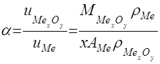 В этих условиях окисление всегда возможно, но наряду с растворением оксида появляется и оксидный слой на поверхности металла, который может тормозить процесс окисления. Скорость окисления металла зависит от скорости собственно химической реакции и скорости диффузии окислителя через пленку, а поэтому защитное действие пленки тем выше, чем лучше ее сплошность и ниже диффузионная способность. Сплошность пленки, образующейся на поверхности металла, можно оценить по отношению объема образовавшегося оксида или другого какого-либо соединения к объему израсходованного на образование этого оксида металла (фактор Пиллинга—Бэдвордса). Рассмотрим реакцию окисления металла xMe + уO ® MexOy объем полученного оксида: