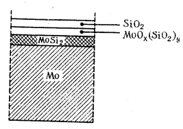 и их применение быстро расширяется. Их используют при химической обработке металлов и при консервации для хранения на длительные сроки (смазки, содержащие ингибиторы). Создание изолирующих пленок на металлах. Для различных условий коррозии на поверхности металлов создаются изолирующие пленки. Их устойчивость зависит от температуры и коррозионной среды. Защитные слои от высокотемпературной коррозии могут быть созданы из тугоплавких соединений, обладающих низкой диффузионной проницаемостью для агента коррозии (О, N, галогены). Для повышения коррозионной устойчивости металлов и сплавов их легируют поверхностно или объемно другими металлами. Жаростойкое или объемное легирование осуществляют одновременно с получением того или иного конструкционного металла. Вводятся такие легирующие компоненты, которые увеличивают жаропрочность и, кроме того, обладают высокой диффузионной способностью в данном металле или сплаве и, выходя на поверхность, образуют устойчивые оксидные слои. Так, например, хром и никель в нержавеющих сталях, диффун-дируя к поверхности, образуют оксидный слой, содержащий шпинель NiCr2O4 и частично шпинель FeCr2O4,. Оксидный слой такого состава оказывается более устойчивым, чем просто оксид Cr2O3, образующийся на поверхности чистого хрома. Поверхностное легирование представляет собой насыщение поверхности данного сплава металлом, обладающим прочным оксидным слоем, — аллитиро-вание, хромирование, силицирование и т. д. Оно осуществляется диффузионным путем из газовой фазы, содержащей пары или летучие соединения легирующего компонента, или нанесением слоя этого металла вакуумным или плазменным напылением, или даже наплавкой, но обязательно с последующей термообработкой изделия. При нанесении на поверхность данного металла легирующего компонента возможно образование между ними интерметаллидов. Примером такого типа защитных пленок может служить силици-рованный молибден: на поверхность молибдена диффузионным путем наносится слой кремния, образующего с молибденом соединение MoSi2. В результате окисления такого материала образуется слой оксидов сложного состава (рис. 5).