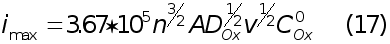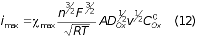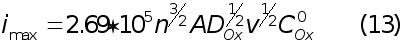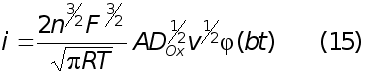 Найденная любым из приведенных способов функция определяет форму вольтамперных кривых в случае обратимого электродного процесса. Уравнение тока пика легко получили на основе уравнения (7) и графика функции (8 - 11). Это выражение известно как уравнение Рендлса - Шевчика: