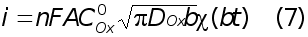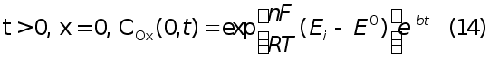 Для описания токов, связанных с электродными реакциями, необходимо решить уравнения (1), (2). Впервые эту задачу решили Шевчик и Рендлс. Рендлс применил для решения графический метод. Аналитический метод, избранный Шевчиком, заключается в применении преобразования Лапласа. После обратного преобразования получается выражение для потока вещества Ox от поверхности электрода.