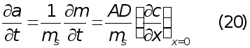 a = m/ms (19) a - активность осадка m - количество металла на электроде, ms - количество металла на единицу активности, f - коэффициент активности, Еp - равновесный потенциал, соответствующий а0 и с0 Активность а является в данном случае функцией времени