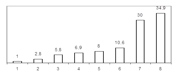 1- Грузчики 2- Чиновники 3- Неквалифицированные рабочие 4- Торговцы 5- Строительные рабочие 6- Представители свободных профессий 7- Сельскохозяйственные рабочие и изучающие с/х профессии 8- Промышленные рабочие и ремесленники.