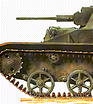 Схема бронирования танка Т-70 Корпус изготовлен из броневых листов, соединенных сваркой или клепкой. Верхний лист корпуса над мотором съемный, смонтирован на петлях. В кормовой части корпуса справа расположены вентилятор и радиаторы, слева, в отдельном отсеке с герметической броневой перегородкой, два топливных бака емкостью по 220 литров. На танках в разное время устанавливались сварные или литые башни. Командирское сидение находится слева от пушки. Пушка смещена в башне вправо. Наводка башни ручная. Углы возвышения и снижения пушки и спаренного пулемета +20 градусов, -60 градусов. С сентября 1942 года танки Т-70 выпускались с усиленной ходовой частью. Была увеличена ширина трака до 300 мм, ширина катков, ленивцев и поддерживающих роликов. Некоторые изменения внесены в ведущее колесо, бортовую и главную передачи. Эти танки иногда назывались Т-70М. Всего было выпущено 8226 Т-70, т.е. по массовости производства они стояли на втором месте после Т-34. Низкая прицельная скорострельность, вызванная совмещением одним человеком функций наводчика и заряжающего, вынудила снять в начале 1943 года танк Т-70 с производства и заменить его несколько улучшенной моделью Т-80 с увеличенной башней, в которой размещались два человека. Ходовая часть, трансмиссии и агрегаты управления, и прочее остались такими же, как и у Т-70. На танке Т-80 моторы были форсированы до 85 л.с. Вес вырос до 11,6 тонны, а высота — до 217 см. Было усилено бронирование борта корпуса до 25 мм. Боекомплект к пушке увеличился до 94 снарядов. Танк Т-80 был своего рода «зенитным» танком. Угол возвышения пушки и пулемета составлял 60 градусов. Танк имел зенитный коллиматорный прицел и мог вести огонь по самолетам и по верхним этажам зданий в городских боях. Танк Т-80 выпускался недолго и был снят с производства (всего изготовлено 75 машин). Легкая САУ СУ-76 До начала Великой Отечественной войны в СССР не было создано ни одного образца массовой самоходной артиллерии, годного для принятия на вооружение Красной Армии. В ходе военных действий стала очевидной необходимость создания самоходной артиллерии, прежде всего для борьбы с вражескими танками. С 1942 года немецкие танки получили усиленную броню и нашим основным противотанковым пушкам «сорокапяткам» стало не под силу бороться с ними. Броня немецких танков пробивалась только снарядами 76,2-мм пушки Ф-22, либо ее усовершенствованной модели ЗИС-3 образца 1942 года. Напрашивалось решение поставить пушку на самоходное шасси. Однако в ходе войны серьезная перестройка производства боевых машин с неизбежным при этом сокращением продукции была недопустима. Поэтому за основу взяли шасси танка Т-70. Осенью 1942 года после выпуска нескольких опытных экземпляров легких самоходных установок началось серийное производство СУ-76. До конца 1942 года их было выпущено всего 26 штук. Но в следующем году — уже несколько тысяч.