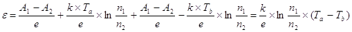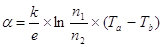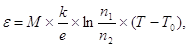 2. По формуле (11) находим отношение концентрации электронов в металлах спая термопары: