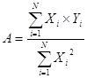 где А – угловой коэффициент наклона прямой проходящей через начало координат. Этот коэффициент находится по формуле: