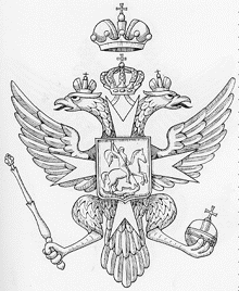 герба. Его манифестом от 16 декабря 1800 года Александр I (1801-1825), взойдя на престол, отменил мальтийский крест на государственном гербе. Но тут же на двуглавом орле отразилось французское влияние. При Александре I на гербе крылья орла широко раскинуты в сторону, перья опущены вниз. Одна голова более наклонена, чем другая. Вместо традиционных скипетра и державы в лапах орла появляются новые атрибуты: перуны или громовые стрелы, факел, лавровый венок (иногда ветвь), ликторский пучок, перевитый лентами. Подобные орлы характерны для первой четверти XIX века. Филарет писал министру двора В.Ф. Адлербергу: «Сия малость не осталась без последствий; были недовольные сим как бы некою приметою, что Россия уже не возвышается, а опускает крылья…» Правление Николая I (1825-1855) характеризуется твердостью и решительностью. Им все восставшие декабристы были подвергнуты суду - 5 расстреляны, остальные сосланы в Сибирь. После восстания в Польше (1830-1832) Николай I ограничил ее статус, который лишил Польшу государственного управления, сейма, государственного совета и национальных войск. Именно при нем с 1830 гербовой орел стал окончательно изображаться с поднятыми крыльями, что стало его неотъемлемой признаком до 1917 года. В этом скрыт некий смысл, который символизировал окончательное установление России. В 1829 Николай I короновался на царство Польское. И с 1832 года герб этого царства помещен на крылья орла, то есть впервые включен в российский герб... В конце царствования Николая I барон Б. В. Кене, который тогда управлял департаментом герольдии, предпринял попытки придать гербу черты западноевропейской геральдики. В частности изображение орла должно было стать более строгим. Герб Москвы должен был изображаться лишь во французском щите, всадника необходимо было повернуть согласно геральдическим правилам в левую от зрителя сторону. Но его проекты реализованы лишь при Александре II, так как в 1855 году Николай I скончался, не успев реализовать проекты Б.В. Кене.