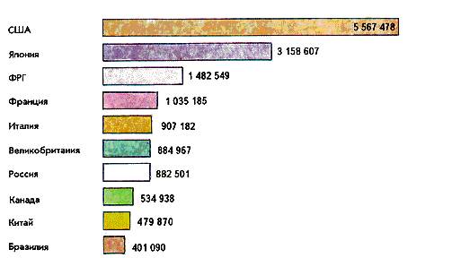 Рис.1. Страны мира с максимальными объемами ВВП в 1991 году.