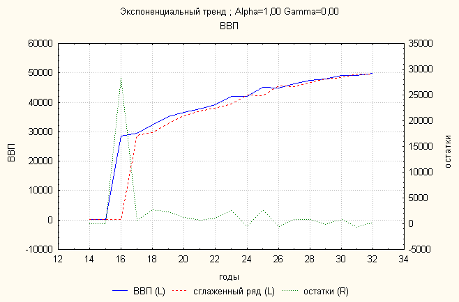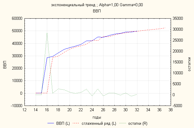Ошибка 1,26 Анализ динамики ВВП показал, что экспоненциальный тренд дает наименьшую ошибку. По нему делаем прогноз: