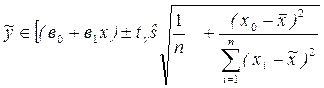 где в0 – оценка b0, т.е. Мв0 =b0; tg ‑ t распределение для уровня значимости a=1-g и числа степеней свободы v=n-2