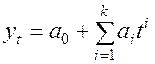 где yt - значение показателя в t-й период времени; T - количество периодов времени; Δkyt - конечная разность k–го порядка для t–го периода; 2kCk – биномиальный коэффициент, определяемый из таблиц. Если определены разности, при которых влияние тенденций исключено, то Vk ≈ Vk+1 ≈ Vk+2 ≈… В практике ограничиваются определением таких разностей, при которых дисперсии приблизительно равны между собой. Если V0 ≈ V1 , то конечные разности первого порядка исключают тенденцию и, следовательно, остатки yt1 соответствуют требованиям корреляционного и регрессионного анализа. b) Определение тенденции в рядах динамики. Необходимо отметить, что тип функции должен быть адекватен характеру изменения рассматриваемого ряда динамики и должен иметь причинно-следственную обоснованность. При определении тенденции часто принимают следующие функции:
