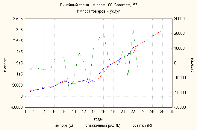 3.1.3 Импорт товаров и услуг Линейный тренд