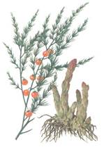 Спаржа известна более двух тысячелетий. Ее культивировали еще в Древнем Египте. Древние египтяне, греки, римляне, а также жители Средней Азии очень ценили спаржу как лекарственное, пищевое и декоративное растение. В Древней Греции спаржу вначале использовали как культовое растение, сплетали из нее венки и увенчивали ими новобрачных, благословляя их союз. В России спаржу как овощное растение стали возделывать в XVIII в. Спаржа — многолетнее травянистое растение высотой 1—1,5 м. Корневище короткое, мясистое, с толстыми шнуровидными корнями. Все растение голое. Стебель прямой, ветвистый, ветви всегда расположены под острым углом к стеблю. Укороченные листовидные веточки (кладонии) тонкие, растопыренные, длиной 1—3 см, сидят пучками по 3—6 в пазухах неразвитых пленчато-чешуйчатых листьев, снабженных шпорцами. Растения двудомные. Женские особи образуют меньше побегов, но они толстые и вкусные; мужские — невкусные. Цветки однополые, располагаются в пазухах чешуйчатых листьев по 1—2 на более или менее длинных, сочлененных около середины цветоножках, расположенных как на главной оси стебля, так и на ветвях. Цветки многочисленные, мелкие, зеленовато-желтые. Околоцветник простой, венчиковидный, опадающий, колокольчатый, глубокошестираздельный. Тычиночные цветки с 6 тычинками, длиной около 5 мм, с пыльниками, почти равными тычиночным нитям. Пестичные цветки вдвое мельче тычиночных. Плод — красная шаровидная ягода, шестисемянная, диаметром 5—8 мм. Семена шаровидные, приплюснутые, морщинисто-бороздчатые, черные, длиной 3—4 мм. Цветет в мае — июле, плодоносит в августе — сентябре. Растет почти по всей территории европейской части России (кроме Севера), на Кавказе, в Западной Сибири. Встречается на заливных лугах, в разнотравных степях и среди зарослей кустарников. Введена в культуру. Выращивают спаржу для получения ранней зелени в виде побегов, используемых в лечебных и диетических целях. Используются корни и корневища, молодые побеги. Корневища и корни содержат аспарагин, стероидные гликозиды (сапонины), при гидролизе которых образуется агликон сарасапогенин. Кроме того, витамины (каротин, витамины группы В, витамин С), углеводы. Побеги богаты аспарагином и каротином. В зеленых ягодах найдены сахара (до 36%), капсантин, физамин. Из семян выделено жирное масло (до 16%). Корни и надземную часть использовали в медицине прошлого при сердечной слабости, воспалительных заболеваниях печени, мочекаменной болезни, отеках, эпилепсии, ревматизме, как слабительное средство, при аллергических заболеваниях. Плоды — при половой слабости (импотенции). Благодаря высокому содержанию аспарагина побеги спаржи положительно влияют на работу сердца, почек. Препараты спаржи способствуют удалению из организма хлоридов, фосфатов и мочевины, что полезно при подагре, мочекислом диатезе, остром и хроническом нефрите, воспалении почечных лоханок, мочевого пузыря и мочевыводящих путей. В отечественной народной медицине отвар корней и корневищ растения применяют при чрезмерном сердцебиении, хронической сердечно-сосудистой недостаточности, затрудненном мочеиспускании. Для приготовления отвара берут 2—3 чайные ложки сырья на 200 мл кипятка и кипятят 5 мин, через 15 мин процеживают и принимают по 50 мл каждые 4 часа. Отвар из корней спаржи употребляют также при водянке, цист