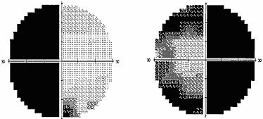 Рис. 2. Полная правосторонняя гомонимная гемианопсия (автоматическая статическая периметрия)