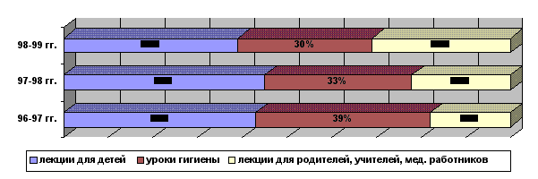 1 – лекции; 2 – уроки гигиены; 3 – лекции для родителей, учителей, медицинских работников
