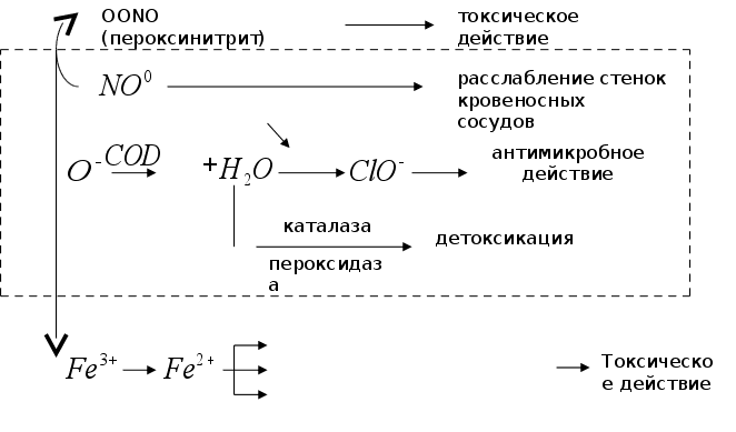 АФК ( Перекисное окисление является универсальным механизмом взаимодействия кислорода со многими органическими субстратами, в том числе с липидами. Внедрение кислорода в молекулы окисленного субстрата приводит к образованию реакционно-способных промежуточных продуктов – свободных радикалов, гидроперекисей, которые в дальнейшем вызывают повреждение других классов соединений – белков, нуклеиновых кислот, углеводов (рис. 1.3.1). Метаболизм супероксидного радикала в норме и при патологии (Владимиров Ю.Я., 1998)