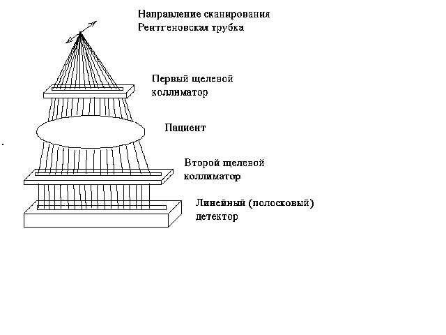 Рис.2 Система линейного сканирования для цифровой рентгенографии грудной клетки.