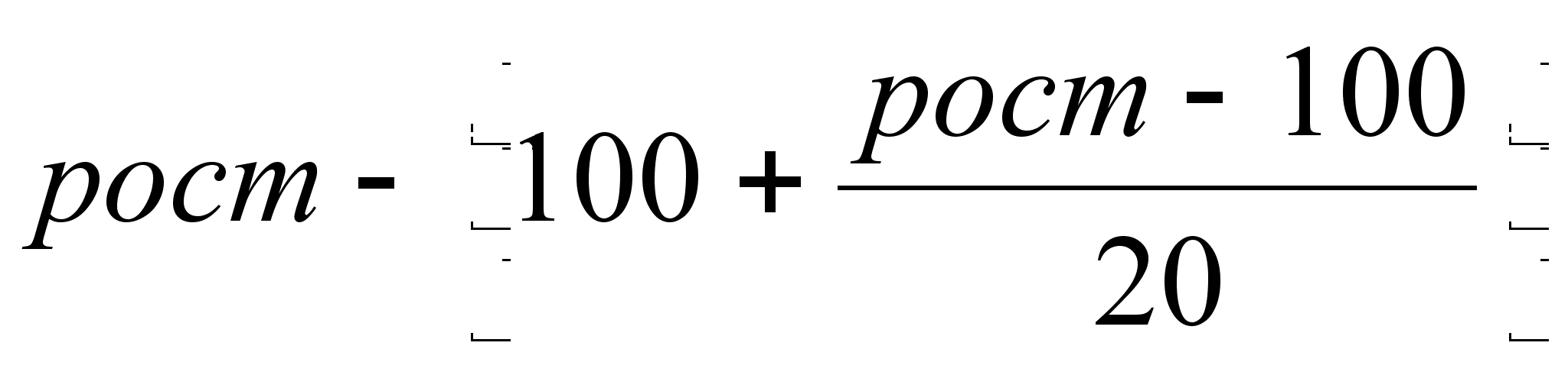 Первый отличается отложением жировой ткани преимущественно в верхней части туловища, при гиноидном — жир скапливается в основном в нижней части тела и при смешанном типе происходит относительно равномерное распределение подкожножировой клетчатки. Выявлена зависимость между характером распределения жировой ткани и наличием метаболических осложнений. В частности, андроидный тип ожирения чаще, чем другие, сочетается с нарушенной толерантностью к глюкозе или с диабетом, гипертонией, гиперлипидемией, гиперандрогенией и гирсутизмом у женщин. По морфологическим изменениям жировой ткани выделяют: а) гипертрофическое (увеличение массы каждого адипоцита) ожирение; б) гиперпластическое (увеличение количества адипоцитов) ожирение. Гипертрофический тип ожирения, характерный для заболевания, проявившегося в зрелом возрасте. Гиперпластическое или смешанное ожирение (сочетание гипертрофии и гиперплазии адипоцитов) отмечается у лиц с избыточной массой тела с детства. Уменьшение количества жировой ткани у тучных сопровождается изменением только размеров жировых клеток, число же их остается практически постоянным, даже в условиях резкого похудания. Этим объясняется резистентность к снижению веса при гиперпластическом и смешанном типах ожирения и важность профилактики заболевания с раннего детского возраста. По степеням ожирения выделяют: 1 степень — избыточный вес превышает нормальную массу тела на 10—29 %. II степень — избыточный вес превышает нормальную массу тела на 30—49 °о. III степень — избыточный вес превышает нормальную массу тела на 50—99 %. IV степень— вес тела избыточен более чем на 100%. По характеру течения заболевание классифицируют как стабильное или прогрессирующее. Наиболее адекватным значением, характеризующим ожирение, является индекс массы тела, вычисляемый по формуле: масса тела в кг/рост в м2. За норму принимается индекс массы, соответствующий 20—24,9. Для определения нормальной массы тела используют таблицы для определения идеальной массы тела с учетом роста, пола, возраста и типа конституции. Кроме того, для определения нормальной массы тела может быть применен ряд индексов: