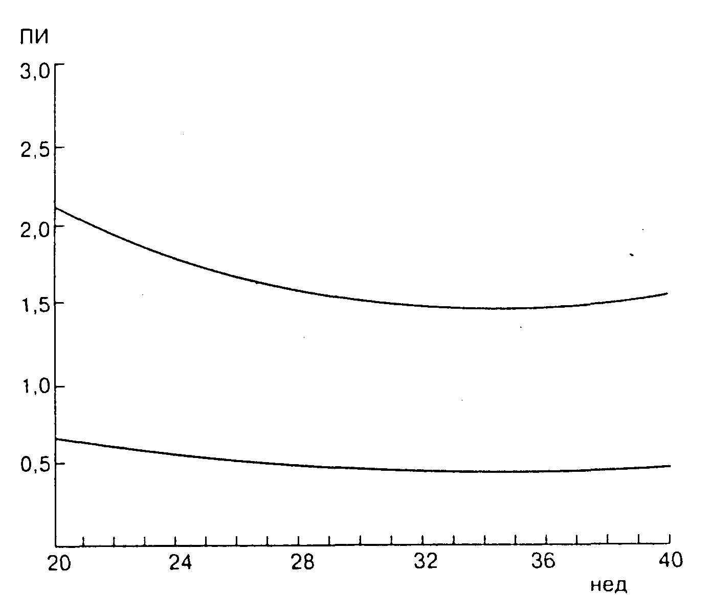 Нормативные показатели ПИ аорты плода во второй половине беременности.