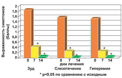 Рис. 2. Динамика глазных симптомов у больных в процессе лечения