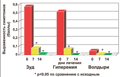 Рис. 3. Динамика кожных симптомов поллиноза у больных в процессе лечения