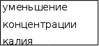 Интоксикация Резко выраженная брадикардия с появлением дромотропного действия ( атрио-вентрикулярная задержка ). 1. Уменьшение концентрации калия - нарушение проведения 2. Блок SH-групп ферментов - нарушение проведения 3. Увеличение интервала PQ ( или полный атрио-вентрикулярный блок ) - должно насторожить ( токсическое действие ). Если доза еще увеличена - проявляется батмотропное действие 1. Увеличение входа кальция - более крутое нарастание деполяризации 2. Уменьшение калия - снижение уровня критической деполяризации 3. Нарушение атрио-вентрикулярной проводимости Все это приводит к тому, что желудочки начинают сокращаться независимо от предсердий - явная гликозидная интоксикация - требует специального лечения : препараты калия, комплексоны, связывающие кальций ( магниевая и натриевая соли ЭДТА - этилендиаминтетрауксусной кислоты ), донаторы SH-групп,на западе - введение антител к Дигиталису ( Наперстянке ). Побочно : 1. Тошнота и рвота, в том числе при парентеральном введении ( центральное действие - рецепторы в рвотном центре). 2. Нарушения зрения, ксантопсия ( видение всего в желтом свете ). 3. Головные боли, головокружение 4. Нейротоксические нарушения до делириев Исчезают только при отмене препаратов Факторы увеличивающие чувствительность к сердечным гликозидам 1 Пожилой возраст 2 Выраженная сердечная недостаточность ( поздняя стадия ) 3 Легочная недостаточность, гипоксия 4 Почечная недостаточность 5 Электролитные нарушения ( особенно гипокалиемия ) 6 Нарушения кислотно-основного состояния ( поэтому комбинируют с диуретиками ) Камфара Эффект слабее сердечных гликозидов, является препаратом выбора при легочной недостаточности ( рефлекторная стимуляция дыхания ), является поверхностно-активным веществом - вытесняет токсины. Недостатки : Масляный раствор - поэтому вводится подкожно - болезненно, медленно развивается эффект - применяется поэтому не при чрезвычайных состояниях. Другие Не должны применяться. Увеличивают работу сердца на 20%, но при этом в 5-7 раз увеличивают потребление сердцем кислорода. Применяются при кардиогенном шоке - Дофамин. Стимулирует сердце + расширяет сосуды, Добутамин более эффективен ( селективный бета-1 миметик ). ГИПЕРКАЛИЭМИЯ 1. Заболевания почек Секретируются в дистальных канальцах. Калий-сберегающего механизма нет. 2. Дефицит альдостерона 3. Передозировка К-препаратов. Для синтеза белка и гликогена требуется достаточно большое количество калия. Изменение поверхностного потенциала клетки, изменения активности миокарда, нарушения проводимости с переходом на самостоятельный ритм, прекращение возбудимости миокарда вследствие невозможности возникновения клеточного потенциала. ГИПОКАЛИЭМИЯ Операции на ЖКТ, поносы, рвоты, уменьшение потребления калия, применение ионообменных веществ, ацидоз, алкалоз (не компенсированный в течении 5-6 дней ). Уменьшение мышечной активности, уменьшение проводимости и возбудимости мышечной ткани. Регуляция обмена кальция Паратгормон - задержка кальция в крови ( увеличение реабсорбции кальция в почках ). Витамин В3 - транспорт кальция из кишечника в кость (оссификация кости ). Кальцитонин - поступление кальция из крови в кость. ПРОТИВОАРИТМИЧЕСКИЕ СРЕДСТВА Общая фармакология Поляризация цитоплазматической мембраны зависит от работы калий-натриевого насосов, которые ст