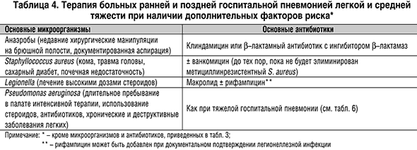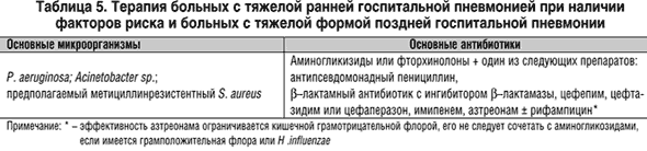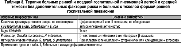 Привычно выделяют флору, характерную для ранних (до 5 суток) и поздних (после 5 суток) госпитальных пневмоний. В первом случае возбудители характерны для внебольничных пневмоний, во втором флора меняется на внутрибольничную. Таким образом, заболевшие в стационаре в ранние сроки госпитализации лечатся, как пациенты с внебольничными пневмониями. К возбудителям ранних пневмоний из грамположительной флоры относят пневмококк, встречающийся в 5–20%. Его источником могут быть пациенты при воздушно–капельном пути распространения и сам пациент с наличием пневмококка в верхних дыхательных путях. Hemophilus influenzae также вызывает ранние пневмонии, относится к грамотрицательным микроорганизмам. Встречается у курильщиков и больных хроническим бронхитом. Поздние пневмонии, вызываемые микроорганизмами из грамотрицательной группы, встречаются в 20–60% случаев госпитальной пневмонии и составляют основные трудности в лечении больных. К ним относятся синегнойная палочка, кишечная палочка, протей, клебсиелла, энтеробактер, а из грамположительной группы – золотистый стафилококк, частота встречаемости которого достигает 20–40%. В нижние дыхательные пути эти микроорганизмы попадают из эндогенных источников или от других пациентов и медицинского персонала при интубации, постановке назогастральных катетеров и через медицинский инструментарий и приборы. Флора, встречающаяся при ранних и поздних госпитальных пневмониях, представлена анаэробами (0–35%) и L. Pneumophila (0–10%) из эндогенных источников, водопроводной воды, кондиционеров. M. tuberculosis встречается менее чем в 1%, и это в основном или эндогенная инфекция, или передача от бацилловыделителя. Из многочисленных вирусов для развития пневмонии имеют значение вирусы гриппа и респираторно–синтициальный вирус (менее 1%). Заражение происходит в основном от пациентов и персонала. Аспергиллы и кандиды встречаются менее чем в 1%, заражение – за счет эндогенного источника или от другого пациента, медицинского персонала. Пневмоциста также встречается редко (менее 1%) и имеет те же пути распространения, что и грибы. Приведенные данные не являются абсолютными, и каждый раз врач решает вопросы этиологии и эмпирической терапии, ориентируясь на местные микробиологические данные, сроки развития пневмонии, тяжесть заболевания и наличие факторов риска, выявленных при сборе анамнеза и осмотре больного. Госпитальная пневмония Госпитальная пневмония – это пневмония, развившаяся через 48 часов и позднее после госпитализации (сюда не входят инфекционные заболевания в инкубационном периоде, при которых возможно поражение легких). Госпитальные пневмонии занимают первое место среди причин смертности от внутрибольничных инфекций. Она достигает 70%, но непосредственной причиной гибели больного пневмония является в 30–50% случаев, когда инфекция является основной причиной летального исхода. Сложности, с которыми встречается врач в практической работе, начинаются с эпидемиологии: госпитальные пневмонии не относятся к заболеваниям, требующим регистрации, и, соответственно, точной статистики нет. Предполагается, что госпитальная пневмония встречается в 5–10 случаях на 1000 госпитализированных. Однако имеются данные о росте этого показателя до 30–100 на 1000 больных при проведении искусственной вентиляции легких. Каждый день 