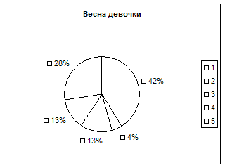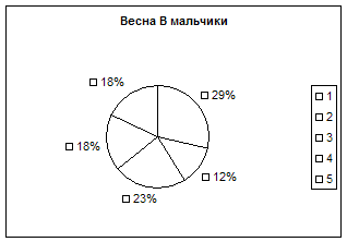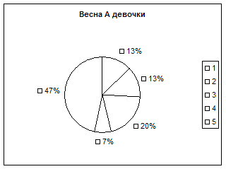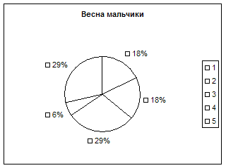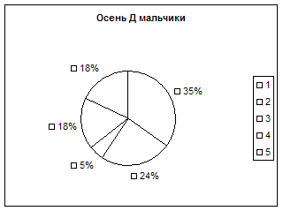 Как видно из результатов, представленных на рисунке 3 повторное обследование учащихся осенью после их перехода в среднюю школу свидетельствует о том, что и у мальчиков и у девочек уменьшилось количество учащихся имеющих высокое значение ИК, так среди девочек осенью не было ни одной, а у мальчиков у троих вместо четырех. Среди обследованных учащихся осенью уменьшилось количество детей с низкой оценкой массо-ростового показателя большинство из этих детей недобирало массу тела, что свидетельствовало о сложности адаптации у них к новым условиям обучения в среднем звене, кроме того, дисбаланс между массой тела и ростом тела и ростом у девочек мог быть обусловлен началом у них нубертата, что сопровождается повышением темпов роста конечностей под влиянием гормонов, желез внутренней секреции и перераспределением мышечной и жировой ткани. У мальчиков в 5 классе также несколько ухудшились оценки ИК так один из учеников (7%) из группы с высокой оценкой ИК перешел в группу со средней, а один (7%) из средней в группу с низкой оценкой индекса Кетле, при этом общее количество мальчиков со средней оценкой ИК осенью не изменилось (59%). Наши данные совпадают с литературными свидетельствующими о том, что в возрасте 11 лет 51% девочек и 6% мальчиков находятся на II стадии полового созревания, в которую происходит изменение темпов роста и пропорций тела (Апанасенко Г.А., Фарбер Д.А. и др. 1990г., Попова Л.А. 2000г.). Сравнивая изменения весо-ростового показателя весной и осенью, мы пришли к следующим заключениям. Весной в 4 «А» классе учащихся с низкой оценкой ИК было 22%, а осенью 28%, это свидетельствует о том, что дети не справлялись с учебной нагрузкой и у них нарушилось гармоничность развития. С высокой оценкой ИК весной было 19% учащихся, а осенью их осталось 9%, это произошло за счет того, что 2 девочки и один мальчик перешли из группы детей с высоким значением ИК в группу со средней оценкой ИК, а учащиеся со средней оценкой ИК весной их было 59%, а осенью стало 63%, пополнили группу с низкой оценкой ИК. Таким образом, можно сделать вывод, что некоторые учащиеся в 5 «А» классе не вполне удовлетворительно справлялись с учебной нагрузкой и кабинетной системой обучения в связи с чем нарушалась гармоничность развития таких детей и уменьшилась резистентности их организма к неблагоприятным факторам окружающей среды, чем очевидно обусловлено увеличение количества детей заболевших ОРЗ уже в конце сентября – начале октября. Наши данные совпадали с результатами обследования Сердюковской Г.К. (1989г), установившей качественную разницу в здоровье школьников с разным физическим развитием, так у детей с недостаточной массой тела значительно чаще наблюдались различные функциональные отклонения (низкое артериальное давление, пониженное содержание гемоглобина в крови, функциональные нарушения ЦНС). У большого числа детей с избыточной массой тела имелись различные хронические заболевания (ожирение, заболевания органов пищеварения и др.), в нашей группе обследованных детей это Андрей С., Настя Д., Наташа Б. Мы им рекомендовали лечебно-оздоровительный комплекс упражнений и снижение в суточном рационе продуктов, богатых углеводами и жирами. Согласно Сердюковкой Г.Н. (1989г.) низкий рост в 60% случаев является свидетельством общего роста отставанием ребенка в физическом, а нередко и в п