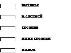 Дети с низкой и ниже среднего оценкой индекса Скибинского получили совет больше внимания уделять своей осанке, т.к. прямая осанка способствует расширению грудной клетки, что облегчает деятельность легких и обеспечивает более глубокое и равномерное дыхание. Кроме того мы посоветовали этим 14 школьникам для совершенствования дыхания сердечно-сосудистой системы делать дыхательную гимнастику, по возможности заниматься плаванием, катанием на коньках. Мы так же обследовали весной и осенью у учащихся 10-11 лет индекс мощности Шаповаловой, который свидетельствует о развитии двигательных качеств - силы, быстроты, выносливости и функциональных возможностях кардио-респираторной системы. Как следует из результатов, приведенных в таблице №1, среди девочек 4»А» класса весной высокие значения индекса мощности Шаповаловой (ИШ) наблюдались у 22% (3 девочки), а у большинства (45%) обследованных учениц 10 лет были средние значения ИШ. Низкие и ниже среднего оценки ИШ весной отмечались у 13% (2 девочки) и 20% (3 девочки) соответственно, эти школьницы с недостаточными функциональными возможностями развития двигательных качеств и состояния кардио-респираторной системы относились ко второй и третьей группам здоровья и у двух из них, Наташи Б. И Кати М., были низкие все обследованные показатели соматического здоровья, а у Маши И. и Киры Б., кроме ИШ, ниже среднего был индекс Скибинского. Как следует из данной таблице №2, весной высокая и выше средней оценка индекса Шаповаловой наблюдалась у 12% (2 ученика) и 23% (4 мальчика) соответственно, эти учащиеся, имевшие высокие значения всех обследованных индексов занимались плаванием (Кирилл П., Леша Б., Никита М.) и легкой атлетикой (Витя Е., Дима П.) и относились к 1 группе здоровья. У 29% (5 человек) школьников 4 «А» весной были средние значения индекса Шаповаловой и по 18 % учащихся ниже среднего и низкие соответственно показатели ИШ. Эти дети входят в 3 – ю и 2 – ю группу здоровья и часто болели, поэтому мы рекомендовали им летом больше находиться на свежем воздухе, плавать и закаляться, поскольку у этих учащихся низкие значения всех обследованных индексов соматического здоровья. Результаты повторного обследования индекса Шаповаловой у этих же учащихся осенью представлены на рисунке № 8. Рисунок №8. Распределение учащихся (%) с разной оценкой индекса Шаповаловой.