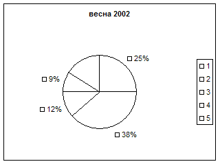 Как следует из данных, представленных на рисунке № 11, осенью на 10% снизилось количество учащихся с высокой и на 6% с выше средней оценкой ИР, что обусловлено скорее повышением учебной нагрузки и изменением условий обучения. При этом количество детей со средней оценкой ИР увеличилось на 14%, но не изменилось с низкой (6%) и ниже среднего (28%) оценками ИР, следовательно у 32% обследованных учащихся и весной и осенью наблюдались низкий уровень адаптационных резервов кардиореспираторной системы, что лимитирует физические возможности организма детей. Таким учащимся мы посоветовали больше времени уделять физическим упражнениям. Соматическая, правильно организованная тренировка, улучшает физическую ССС, улучшает реакцию кардиореспираторной системы на мышечную работу, расширяет возможности детского организма. С лечебной целью использовать плавание, которое значительно улучшает не только деятельность ССС, но и дыхательной системы, увеличивая объем легких, экскурсию грудной клетки, величину жизненной емкости легких. В ходе нашего обследования после оценки каждого показателя по таблицам в баллах мы рассчитывали общую сумму баллов, которой определяли уровень соматического здоровья школьников (рисунок № 12), т.е. степень жизнеспособности их организма, что в наибольшей мере определяется развитием общей выносливости. Рисунок № 12. Распределение учащихся (%) с разным уровнем соматического здоровья. Весна 2002
