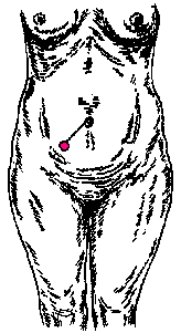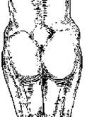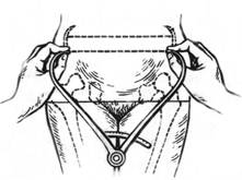 Distantia trochanterica — расстояние между большими вертелами бедренных костей — 30 см (норма 30–31 см). Conjugata externa — прямой размер таза, от середины верхненаружного края лобкового симфиза до надкрестцовой ямки — 22,5 см (норма 20–21 см). 2. Крестцовый ромб.