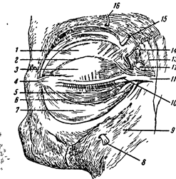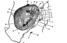 Естественно, что относительно толстый костный край входа в глазницу обеспечивает вместе с костными стенками глазницы известную защиту глазному яблоку, которое остается не прикрытым костью лишь спереди, где защитой для него служат веки с их плотным хрящом и тарзо-орбитальной фасцией. Следует упомянуть, что края основания костной орбиты не лежат в одной плоскости, - наружный край более других отодвинут кзади, и поэтому наиболее открытой глазница является именно с наружной ее стороны (чем обеспечивается большее поле зрения и поле взора кнаружи, но, естественно, уменьшается защитная поверхность). Нижний край глазницы по сравнению с верхним ее краем точно так же несколько отступает кзади. Все эти анатомические данные так или иначе учитываются и используются в клинике, особенно, конечно, в офталмохирургии: в случае необходимости проникнуть при хирургических операциях в глазницу, в частности, в ретробульбарное пространство, предпочтительнее это делать именно с наружной стороны, где орбита более всего открыта.