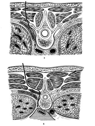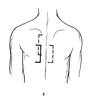 2) шейная боковая медиастинотомия при локализации гнойника в верхне гноверхнебоковых отделах средостения (при ранении шейного отдела пищевода, распространении книзу заглоточных абсцессов). Больной лежит на спине с подложенным под плечи валиком, голова его повернута вправо. Производят разрез длиной 10-12 см по переднему краю левой грудино-ключично-сосцевидной мышцы, начиная от рукоятки грудины. Послойно рассекают кожу, клетчатку, поверхностную и вторую фасции шеи. Вместе с мышцей кнаружи отводят сосудисто-нервный пучок. Пальцем осторожно создают канал, проникая вглубь и книзу позади пищевода, по направлению к заднему средостению. Вскрывают гнойник, промывают и дренируют рану. Рис. 5 3) внеплевральная задняя медиастинотомия по Насилову при некоторых ограниченных задних медиастинитах.(рис.5) сохранила актуальность,хотя сам по себе доступ довольно травматичен, а оперативная рана слишком глубока и не всегда обеспечивает достаточное дренирование обычными способами. При операции больной лежит на животе. Соответственно локализации гнойника по задней поверхности груди выкраивают прямоугольный лоскут в виде створки, основанием обращенный латерально. Откидывают его кнаружи и расслаивают длинные мышцы спины. Поднадкостнично резецируют 2-4 ребра на протяжении 5-7 см. Пересекают оставшиеся межреберные мягкие ткани, тщательно останавливают кровотечение из межреберных артерий и вен. Осторожно отслаивают кнаружи париетальную плевру. Следуя по параплевральной клетчатке. Находят гнойный очаг, опорожняют его и промывают антисептическим раствором.